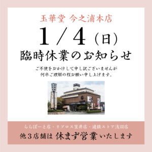 1/4(日)今之浦本店臨時休業のお知らせ
