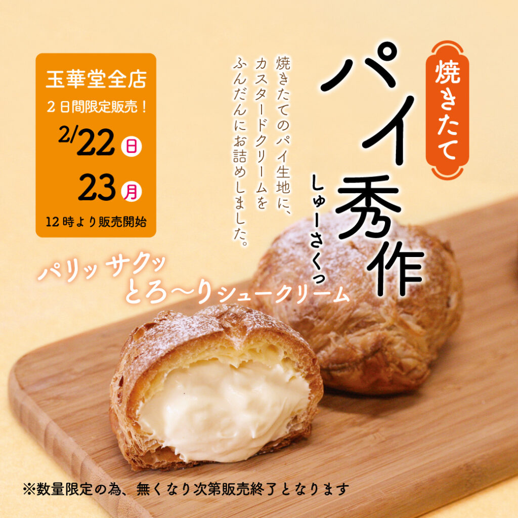 おかげさまで大好評!!2/22(日)2/23(月祝)2日間、「パイ秀作」を販売致します。