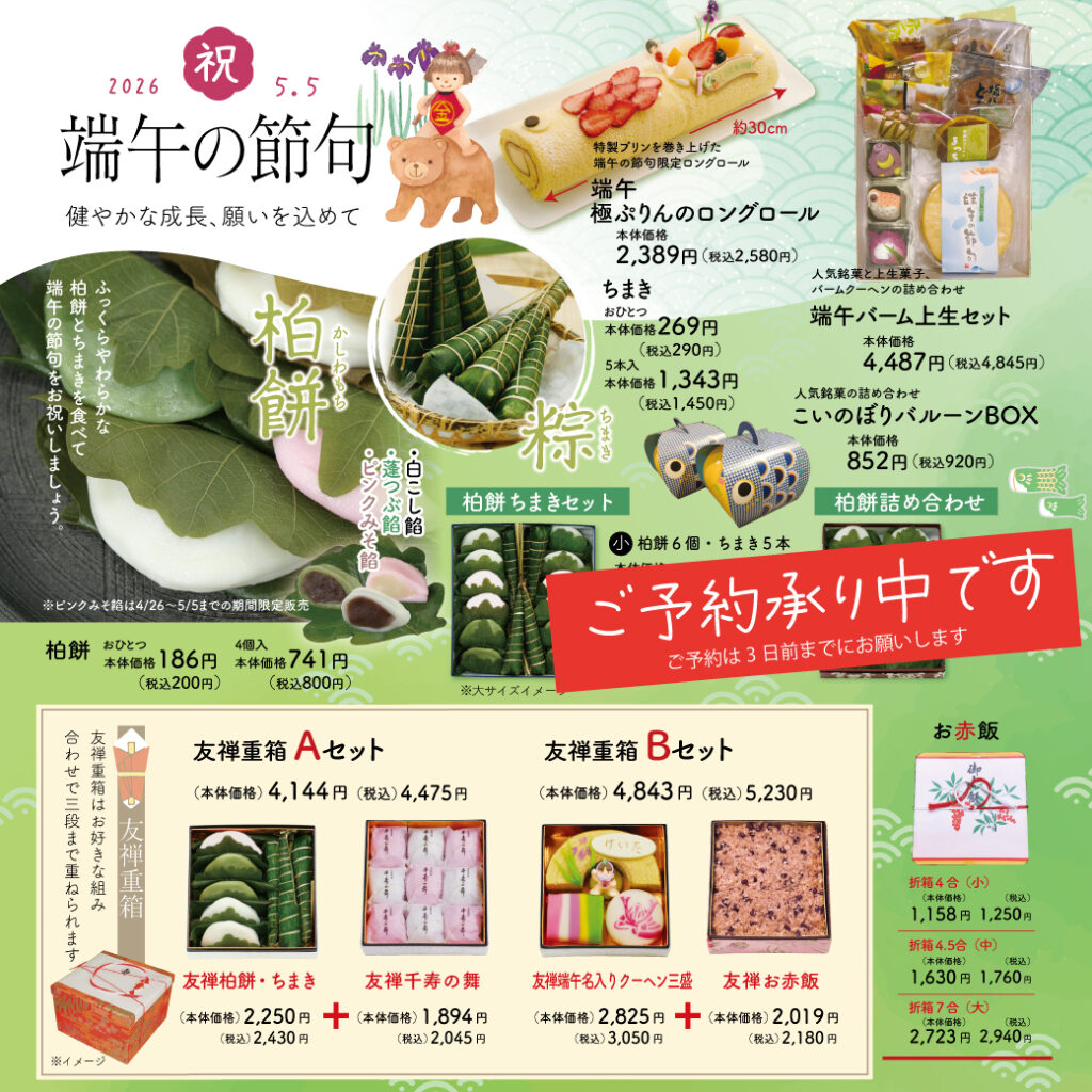 🎏5月5日(月)は端午の節句、お子様の健やかな成長を願い、縁起の良いお菓子でお祝いしませんか?