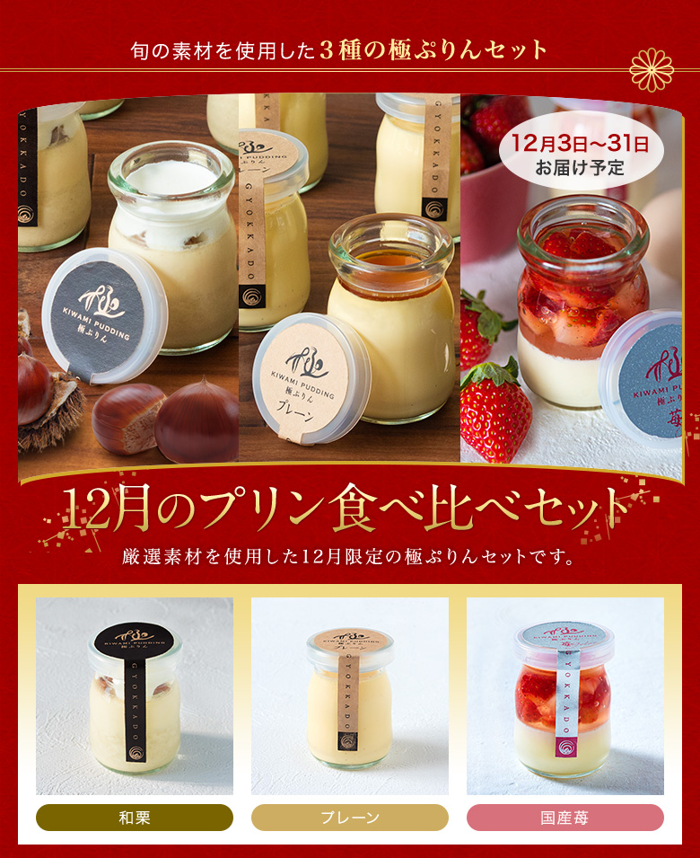 【送料無料】極プリンアソート(プレーン・苺・抹茶)5本入 ギフト箱入