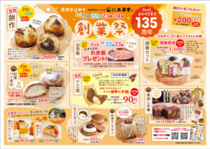 お客様へ日頃の感謝を込めて創業祭限定企画をご用意しました。 【お赤飯プレゼント】、【20%OFF感謝セット】、【復刻、半額十三里】、和栗をふんだん使用した【和栗パイ秀作】【復刻餅作】など普段登場しない限定品がそろいました。 …(続きを読む)